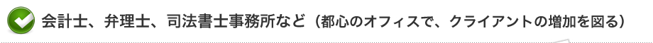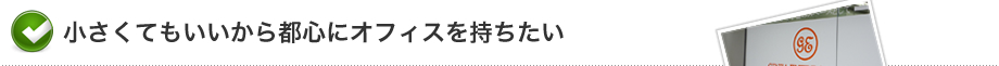 A:レンタルオフィスへの交通の便が良く、お客様への移動時間が短くなったので余裕を持つ事が出来るようになりました。又、レンタルオフィスで郵便や宅急便を留守の時に預かって頂けるので助かっています。レンタルオフィスでは複合機が相場より安く使えるので経費が押えられています。 |