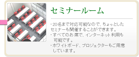 A:駅からレンタルオフィスまで歩いて10分以内で来ることができるので便利です。1Fというフロアも階段やエレベータを使わなくても済むので大変有り難いです。レンタルオフィスの周りの環境もホテルや飲食もあり便利です。 |