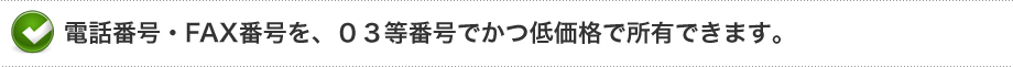 | 電話番号提供サービス | FAX番号提供サービス | ||||